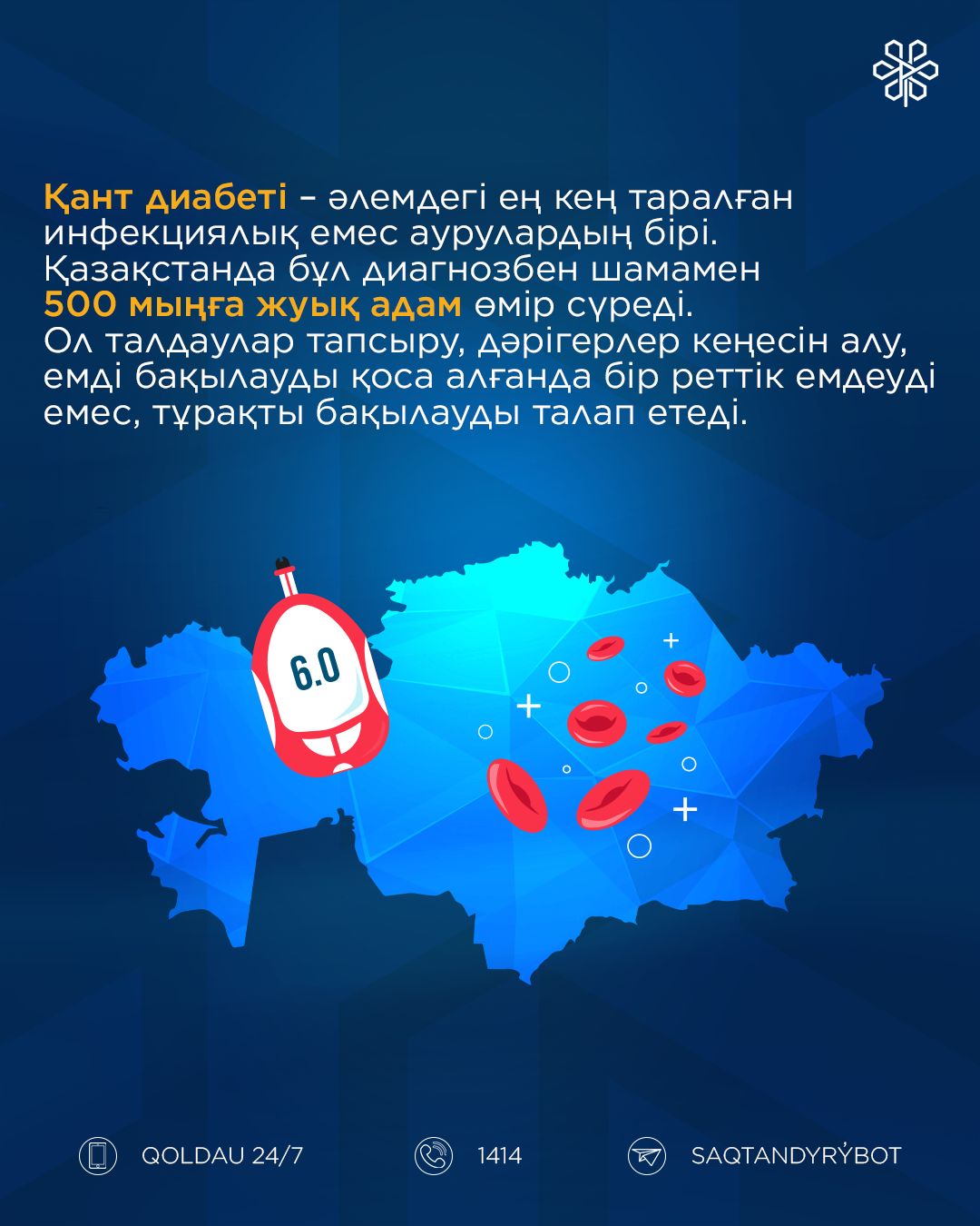 Сахарный диабет – это одно из самых распространенных неинфекционных заболеваний в мире. В Казахстане с таким диагнозом живут порядка 500 тыс. человек. И он требует не разового лечения, а постоянного наблюдения, включая сдачу анализов, консультации, коррекцию лечения.