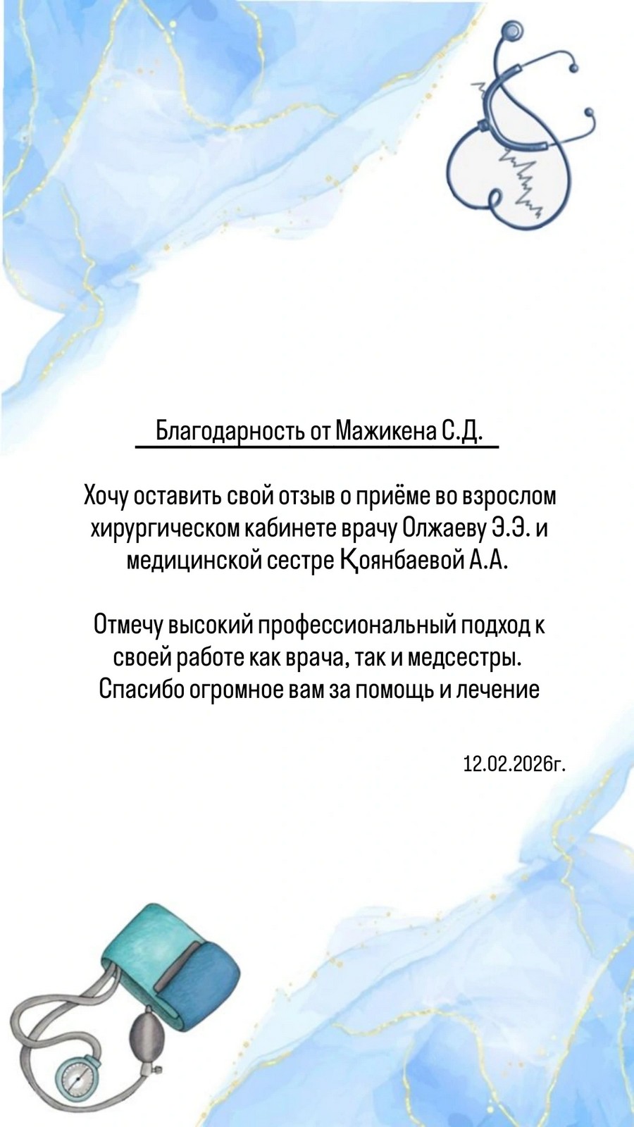 Благодарность от пациента!