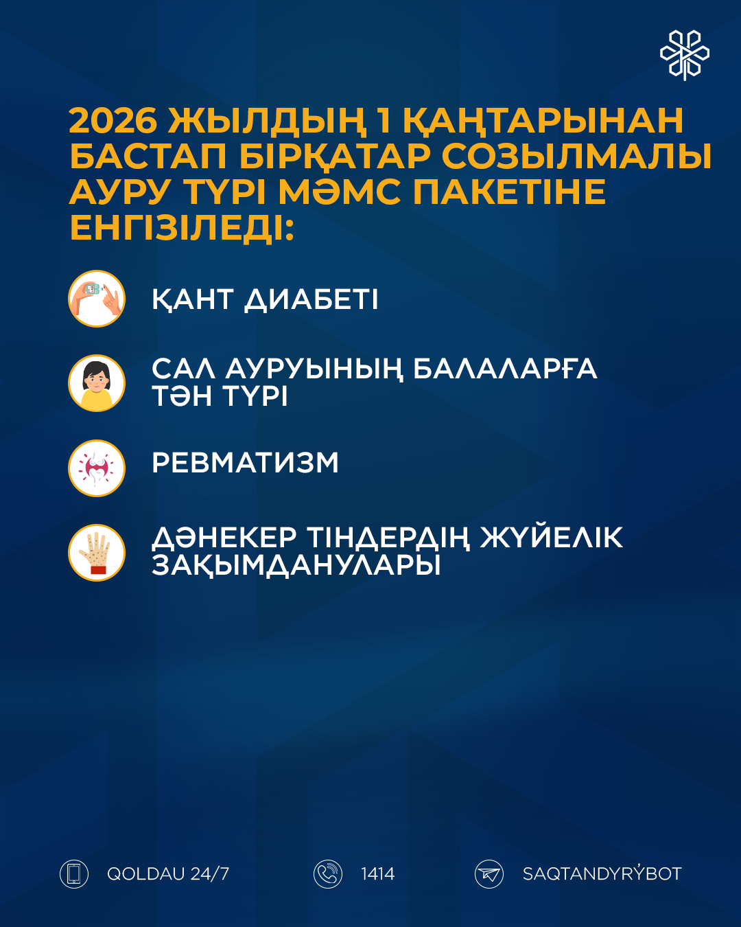 С 1 января 2026 года ряд хронических заболеваний включается в пакет ОСМС: сахарный диабет, детский церебральный паралич, ревматизм, системные поражения соединительной ткани.